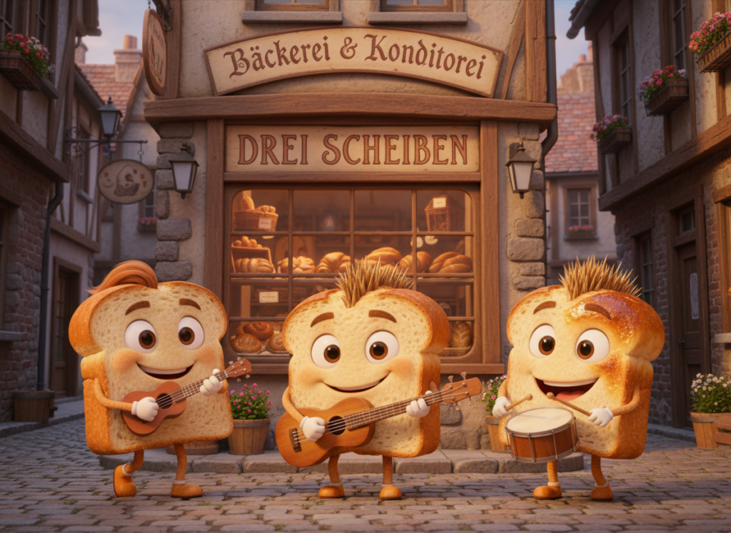 Drei Scheiben Videos Band Drei Scheiben setzt sich für den guten Genuss ein. Bauer, Bäcker und Konditor. Husch, schau dir unsere Videos an. 1 Lied 2 Lied Der Konditor Rettung eines Bäckers Gig beim Konditor Große Show beim Bäcker Das große Fest Frisches vom Bäcker Bauer Lirefert Genuss mit Vitamine Erste Tournee Lecker, lecker Konditor Frühling kommt Überraschung Im freien Das große Fest in der Altstadt teilen teilen teilen